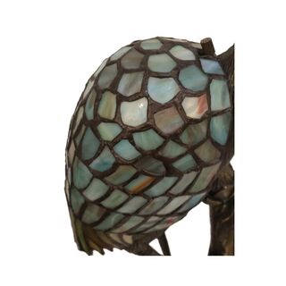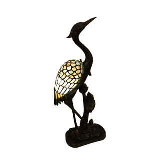 Leadlight Crane Table Lamp with soft teals, caramel and touch of red