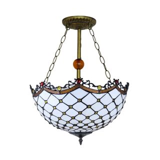 Large Uplighter Opal stainled glass with Amber and Bead Edging