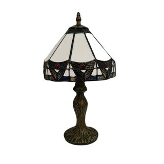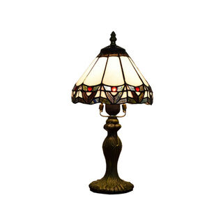 Small stained glass table Lamp with Opal Angled Panels & Beads
