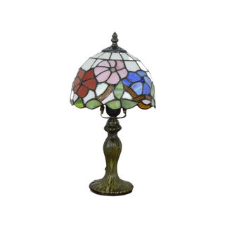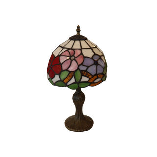 Small Leadlight Table Lamp with Red, Purple and Blue Flowers