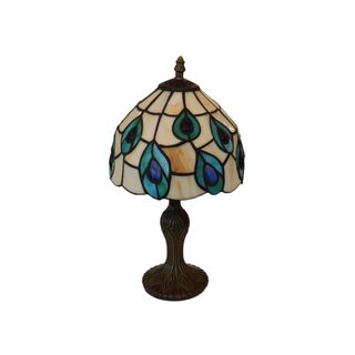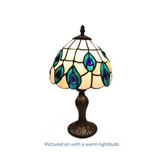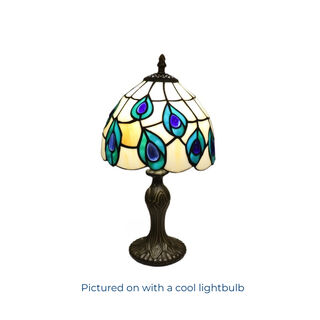 Small Table Lamp Opal background with Teal & Blue Peacock Feathers