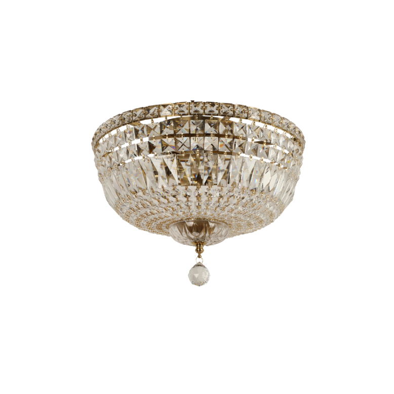 Classique Flush 5 Light Crystal Chandelier Satin Brass