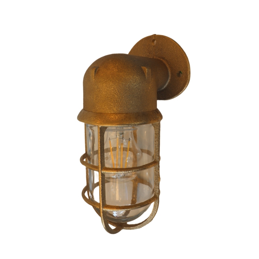 Solid Brass Caged Ship Bunker Ceiling Mount Exterior Outdoor Light