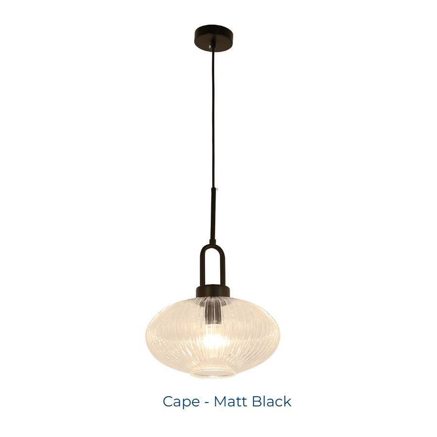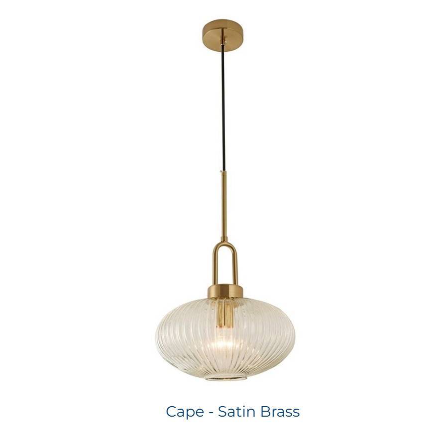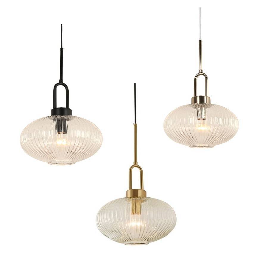 Clear ribbed glass with Satin Brass, Matt Black or Satin Nickel fittings