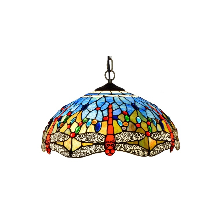 Large Stain glass pendant with Blue Dragonfly pattern