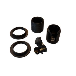 SLH025 E27 Black Switched ES Bakelite Lamp Holder & skirt Rings