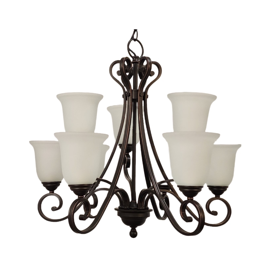 Bronze 9 Light Wrought iron fitting with frosted glass